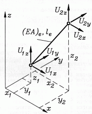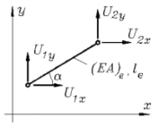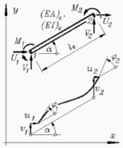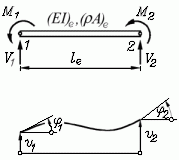 Weil mit den Knotenkoordinaten auch die Elementlänge le und der Winkel α bekannt sind, werden nur drei Elementparameter benötigt: Biegesteifigkeit EI und Massebelegung ρA (Masse pro Länge). Theoretische Grundlagen: "J. Dankert: Numerische Methoden der Mechanik", Kapitel "Die Methode der finiten Elemente". |