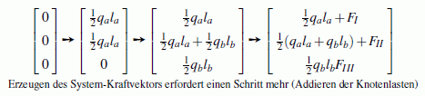 Entsprechend wird der System-Kraftvektor erzeugt: