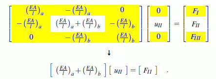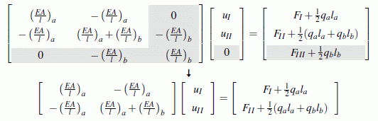 - Die System-Steifigkeitsbeziehung nach Einbau der Randbedingungen ist ein
