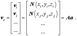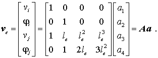 mit allgemeinen Freiwerten ai gewählt werden (die Anzahl der Freiwerte und damit die Anzahl der Spalten von N müssen mit der Anzahl der Freiheitsgrade nf des Elements übereinstimmen). Der Elementverschiebungsvektor kann nun durch Einsetzen der Koordinaten der einzelnen Knoten folgendermaßen aufgeschrieben werden: