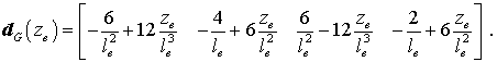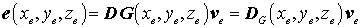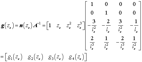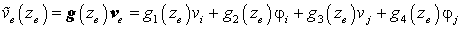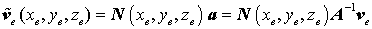 erforderlich ist (bezogen auf ein elementeigenes Koordinatensystem). In ve sind alle nf Verschiebungen an allen Knoten des Elements zusammengefasst (Elementverschiebungsvektor), und weil das Verschiebungsfeld für alle Punkte des Elements (auch für die Knoten) gilt, muss die Matrix der Ansatzfunktionen G so beschaffen sein, dass beim Einsetzen der Koordinaten eines Knotens das Produkt Gve den entsprechenden Knotenverschiebungsvektor ergibt.