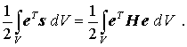 kann der Anteil eines einzelnen finiten Elements am elastischen Potential so formuliert werden (man beachte, dass sich beim Transponieren eines Produkts die Reihenfolge der Faktoren umkehrt):