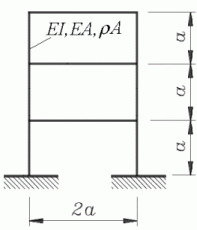 Für den skizzierten biege- und dehnsteifen Rahmen mit konstantem Querschnitt berechne man die kleinsten Eigenkreisfrequenzen und die zugehörigen Eigenschwingungsformen.