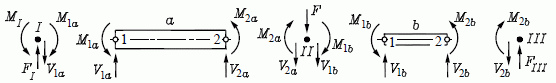 Am nebenstehend skizzierten einfachen Problem soll dieser Weg plausibel gemacht werden. Der klassische Biegeträger kann mit der Finite-Elemente-Methode exakt nachgebildet werden, so dass eine Einteilung in nur zwei Elemente ausreichend ist. Für diese beiden Elemente (natürlich auch Biegeträger) werden nun nach einem beliebigen Verfahren (z. B. Differenzialgleichung der Biegelinie) die Zusammenhänge zwischen den Schnittkräften an den Knoten und den Verformungen an den Knoten formuliert. Anschließend werden diese Elementlösungen unter Beachtung von Kompatibilität und Gleichgewicht (Schnittkräfte und äußere Lasten an den Knoten) zur Gesamtlösung zusammengesetzt: